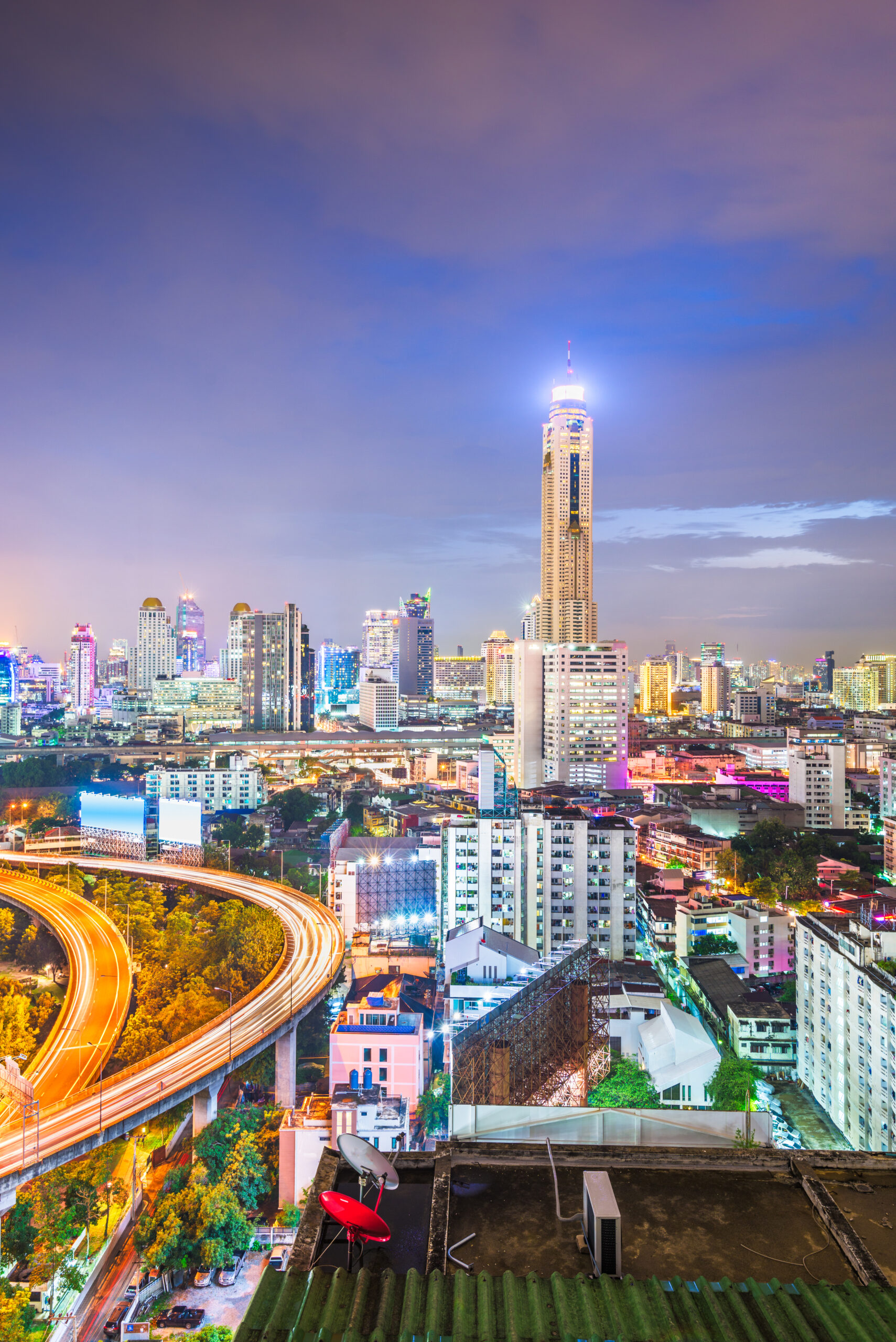 Bangkok, Thailand cityscape at night.